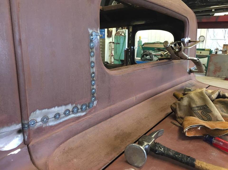Garnish moulding process… cut cut cut weld weld weld…. customer couldn’t find the correct mouldings for his 5w so we cut some randoms up to fit. #1932ford #1934ford #1933ford #welding #hotrod #hotrodshop#makingshitwork @ Old Soul Hot Rod Shop