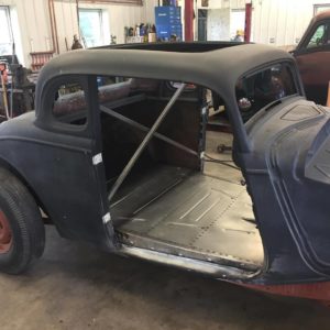 Nothing amazing just building more 34 floors, from a flat sheet to a factory looking floor. The car already looks better. Not sure how many of these we have done but it always feels good to save one and cut out the horrid 1×1 and 1/8 flat floors that always seem to get welded into these beautiful bodies and put something a little more valid in ! Have a great weekend folks! #1934ford #model40 #hotrodfloors #1934fordfloors #hotrodshop @ Old Soul Hot Rod Shop